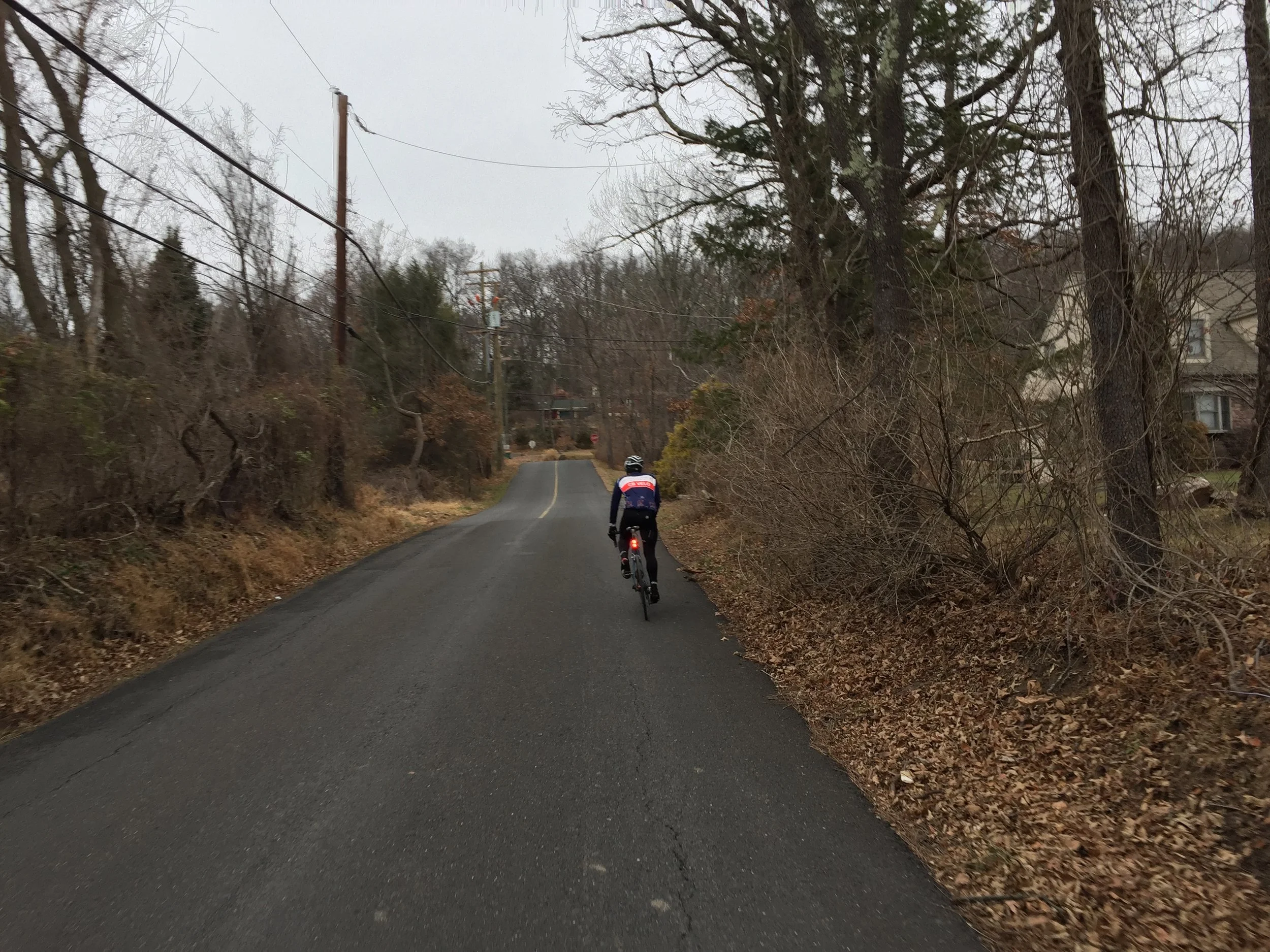 Under cloudy skies and low forties air temperature, I rode toward a Doylestown bike shop to meet our old pal, Mike. He graciously accepted to ride for today’s Festive 500 stage. If he wasn’t part of the ride, I’m sure at some point I would have changed tack and headed home.