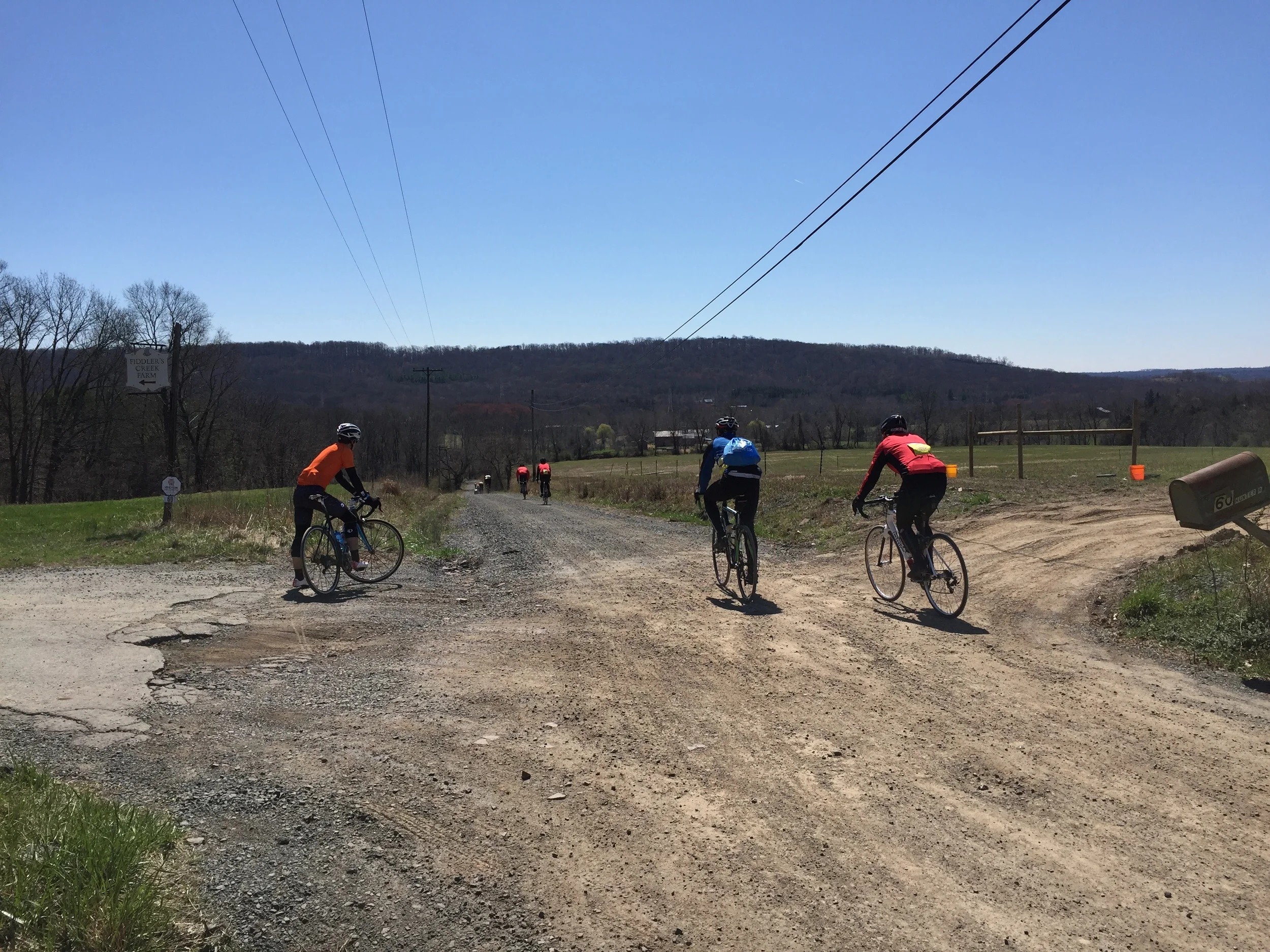 My favorite sector, Rocktown Road, was in inspired condition. Mike and I flew over the tire tracks forming tiny clouds of dust. We focused on our lines through the quick bends. This is why we ride. Other technical portions such as Strompf Tavern Road not only required concentration with the tight turns, but riders had to decide how stunting to be down its steep gravel descent to the Delaware River. Bike handling confidence is a must here. We can say this now without jinxing the ride, neither of us ever flatted. This is a testament to how suitable the unpaved sections were.