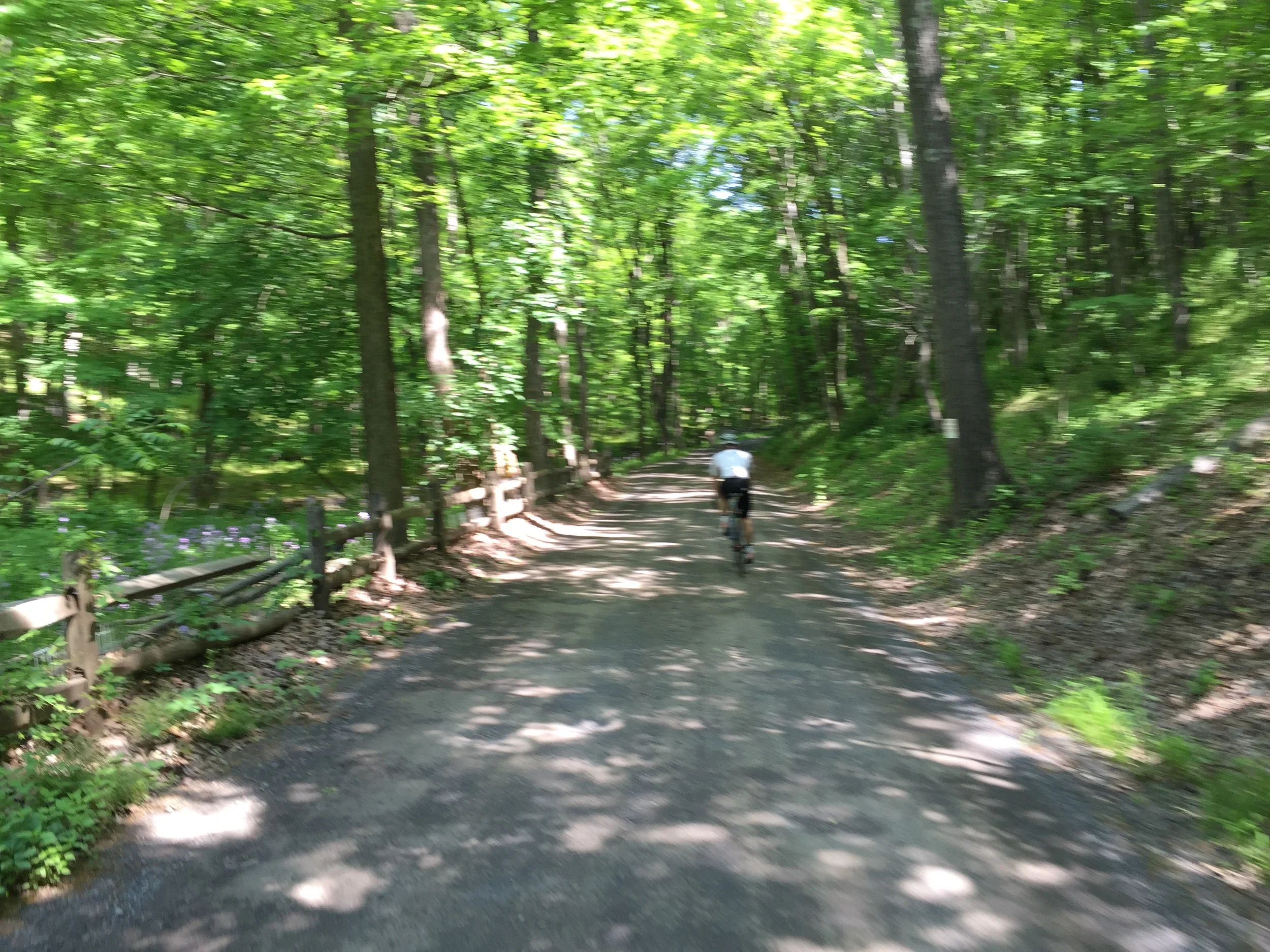 A blurry view of a beautiful road. Ridge Valley Road was surrounded by purple wildflowers and high grass. It was one of the most enjoyable moments of today's ride.