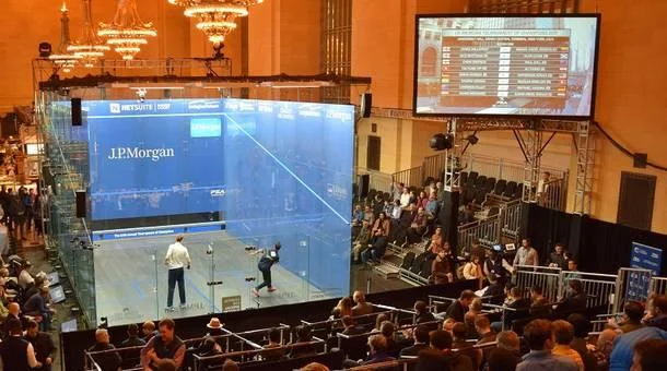 Squash tournament in New York's Grand Central Station. Photo is not mine, and can be found here.
