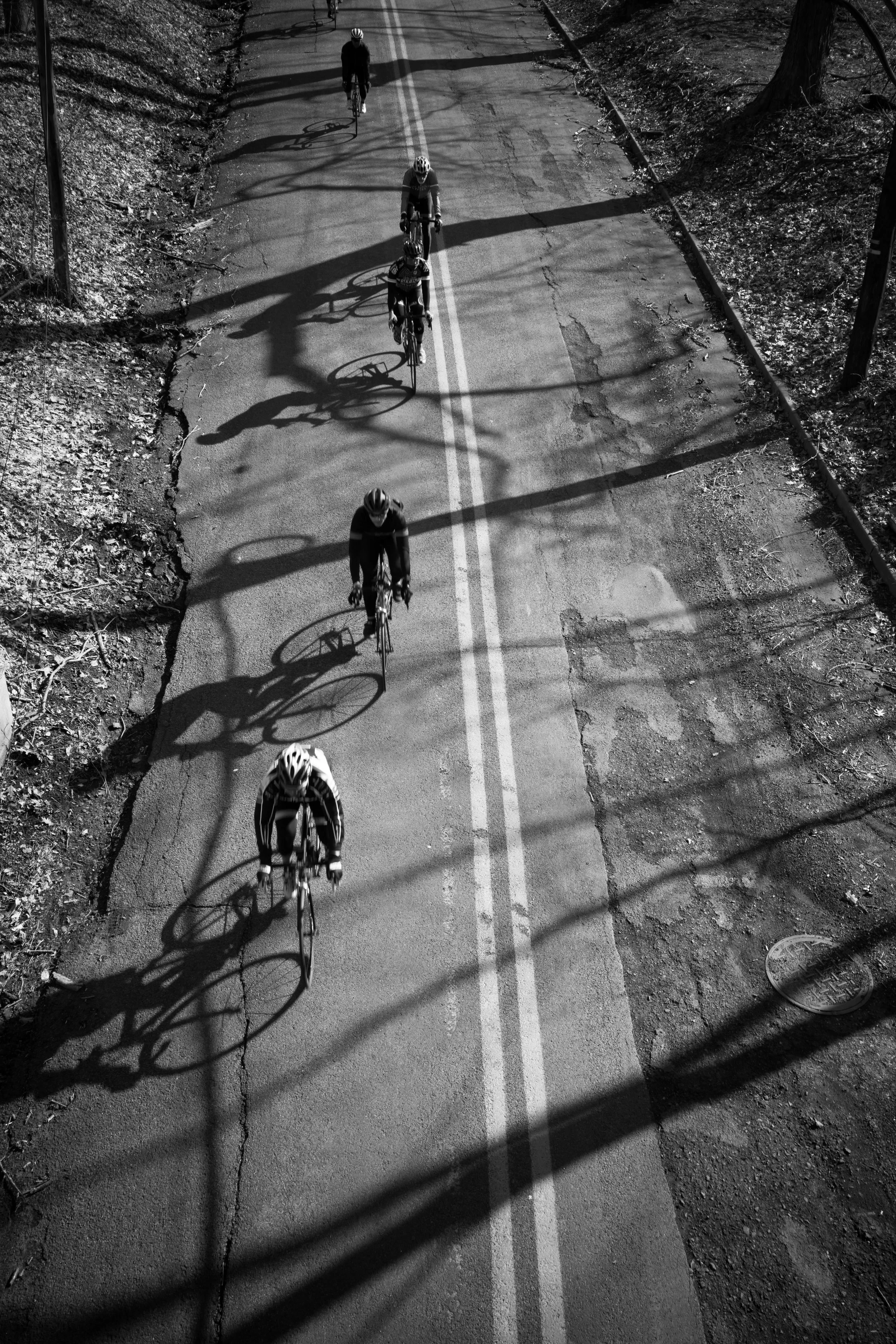 If you ask any local cyclist to rattle off ten of the hardest climbs, they’ll inevitably say the ones on this course. Though there are perks to the Fleche Buffoon route. It has a smaller feel, which means like- abled riders stick together and regroup at the summit. The route passes at least five coffee shops, one of which we stopped at last year where others were discussing their success or failure of Uhlerstown Road. It also knocks over the Delaware River and back from Bucks County into Hunterdon County and back again. Riders certainly get a sampling of both styles of climbs: The Bucks side’s violent uphills compared with the longer, slightly less steep but drawn out hills of Hunterdon County.