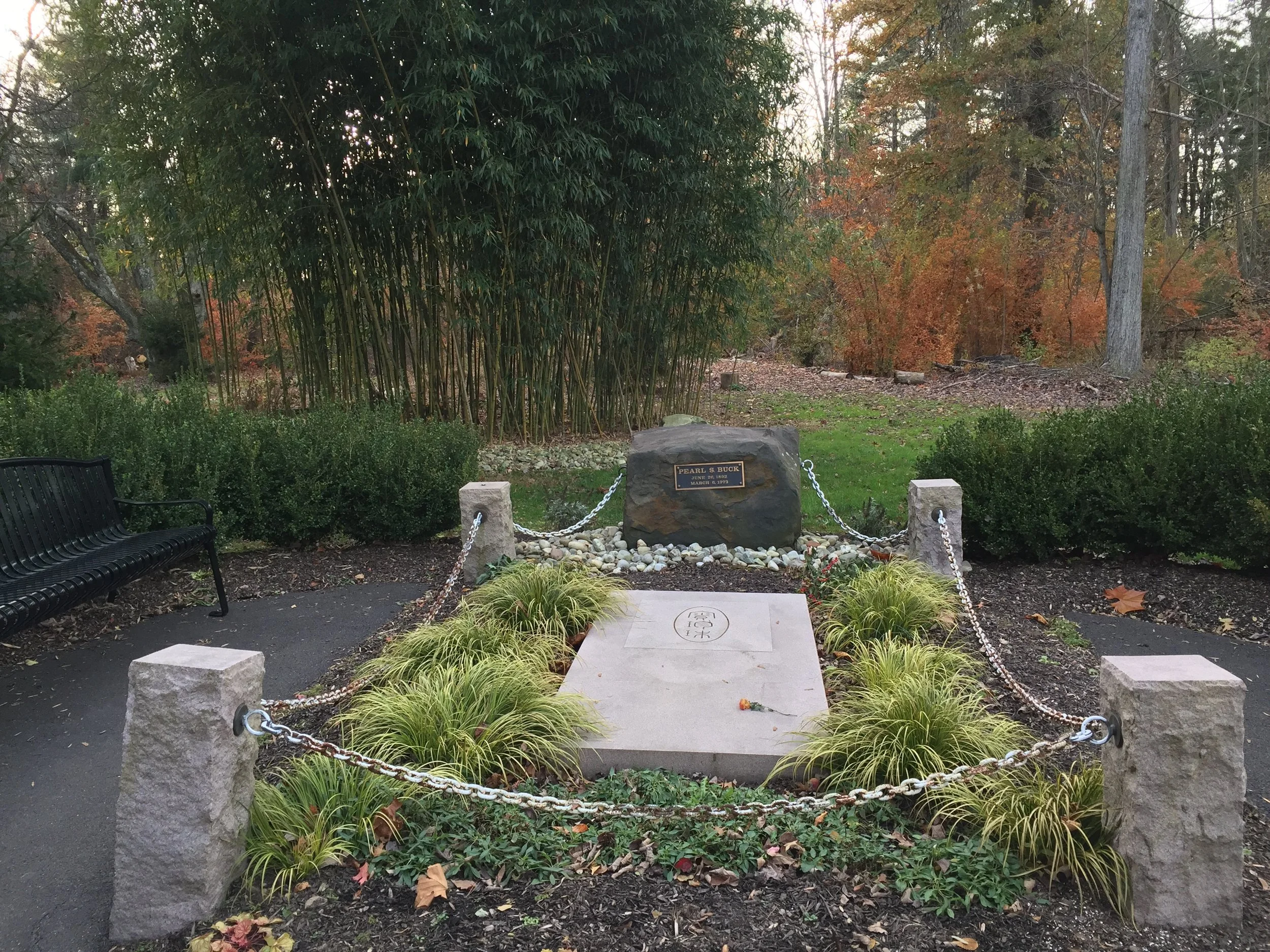 The Pearl S. Buck gravesite is off the initial approach to the Pearl S. Buck house. Her name is inscribed in Chinese characters due to her extensive time in China at the turn of the twentieth century.