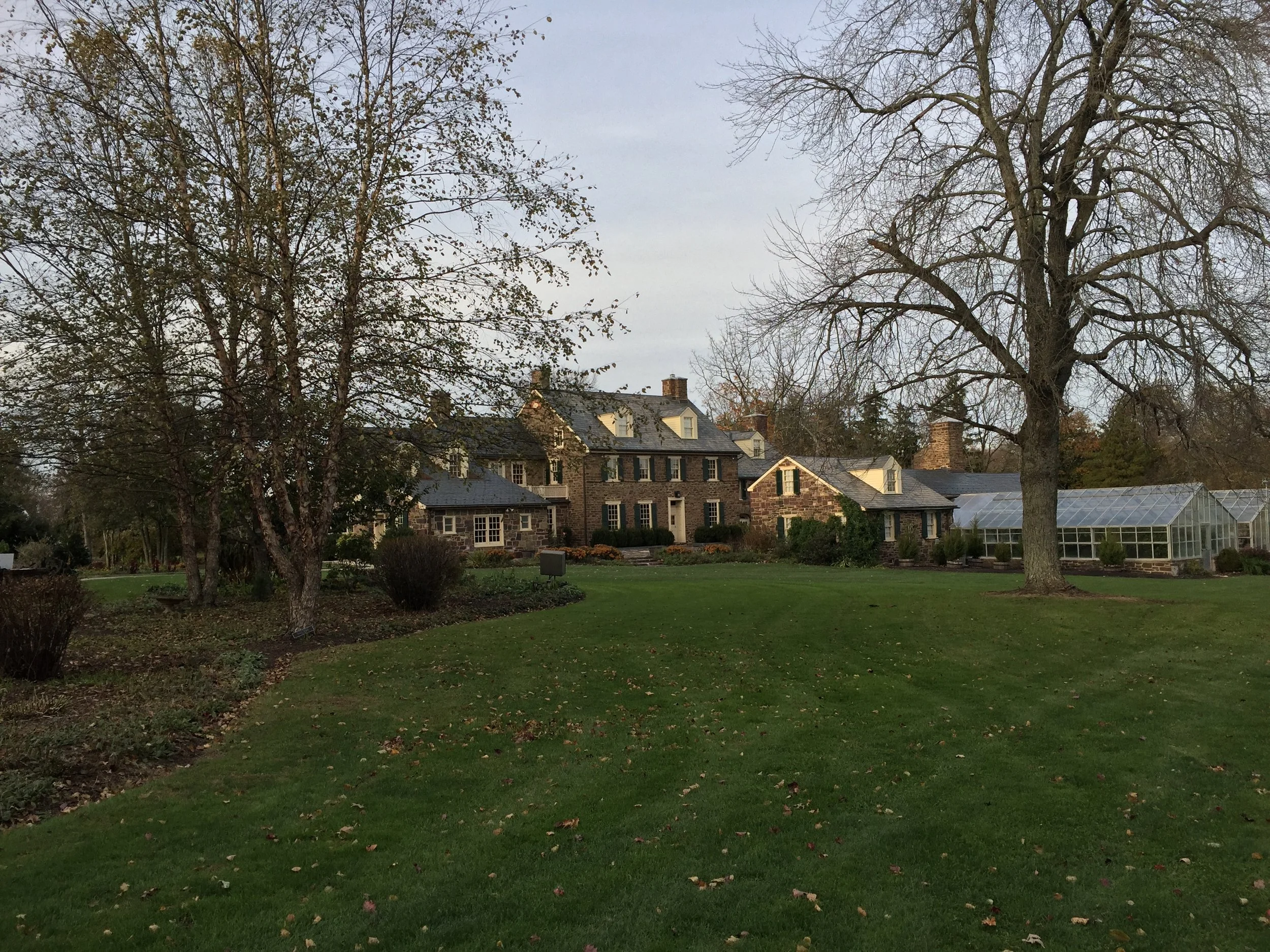 The Pearl S. Buck house proper, complete with manicured lawns and sprawling masonry.
