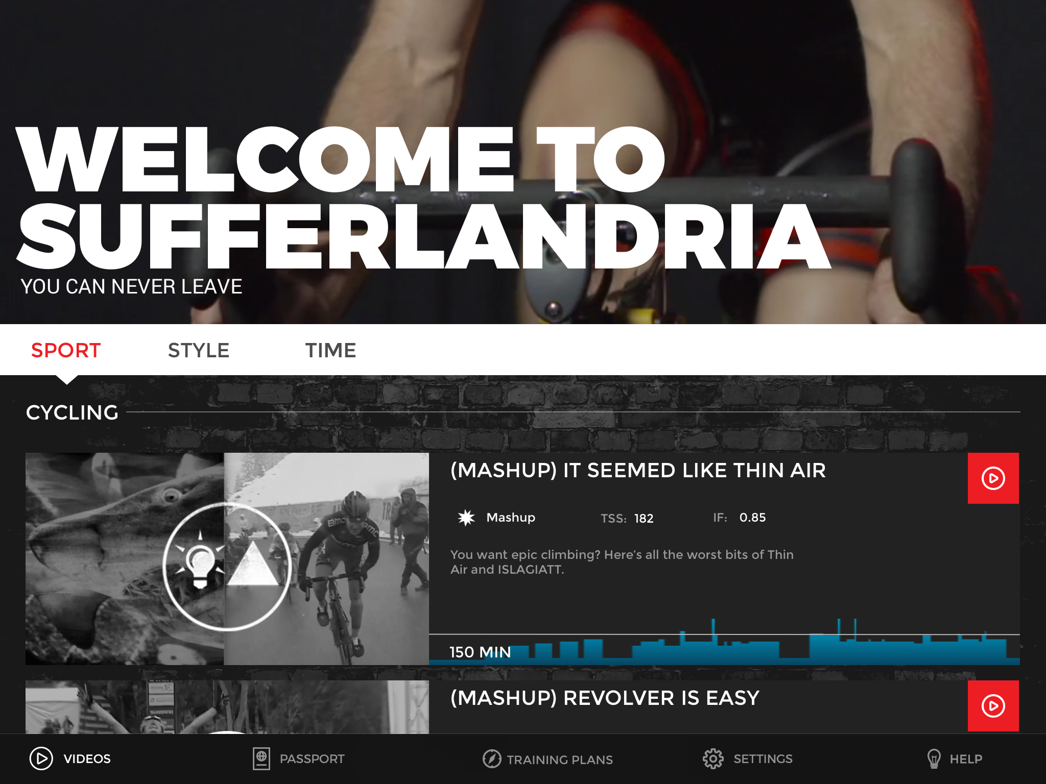 The user menus are extremely easy to navigate. This is the welcome screen for The Sufferfest's videos library.