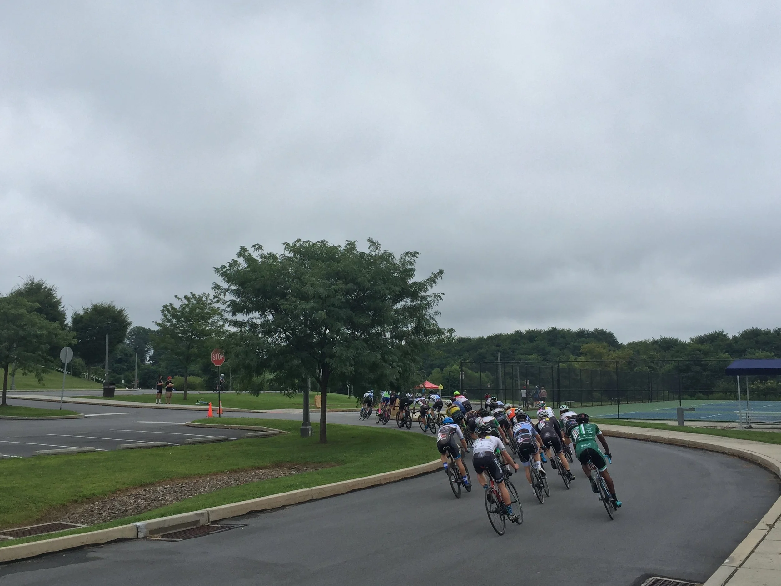 The starting line at the West Chester Rustin High School for the Benchmark Twilight Cycling Classic qualifier. This was the mid-point of the downhill straight-away.