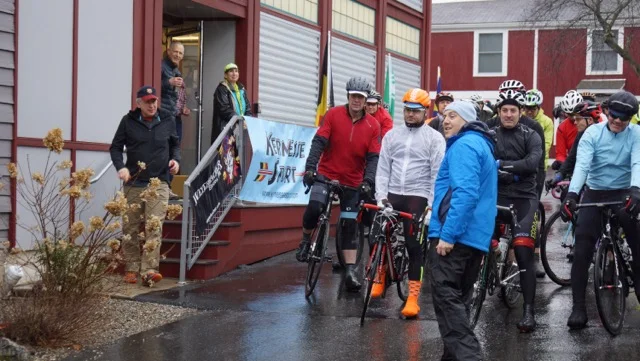 Riders gather at Sourland Cycles in Hopewell, NJ, for the start of the Sourland Semi-Classic, the first event on the Kermesse Spring Classics Series. Photo courtesy Emily Vickers, MVPLLC