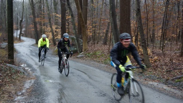 (2018) My suspicions about the day of riding along Sourland Semi-Classic parcours began at four in the morning. It was the sound I suspected many other riders heard: the patter of wind-blown raindrops, precipitation slapping the windows. For a brief moment before drifting back into my warm slumber I updated my day’s riding attire. How nice it was to pull the blanket up and sink back into the mattress. The clock was ticking on those tactile moments, even if I continued to hit the snooze function on my phone.