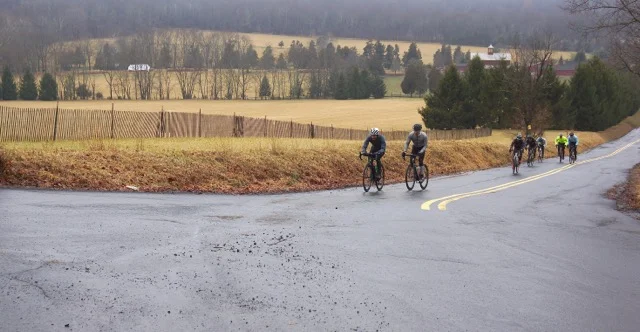 One further aspect that stands out in the Belgian spring classic races is the notoriously narrow road. You know the ones: they’re where you think, “How does a race down this road plus team cars, officials, and motorcycles? The Sourland route has numerous moments of skinny farm roads, painted brown this time by manure, and oftentimes bordered by a swollen creek. A strong dosage of wind added to the belief we had swapped weather patterns since Belgium was enduring near freezing weather. We hoped each turn would give us a reprieve from the headwind but alas, each turn bewildered us more by exhaling harder into our front side. How could this be?