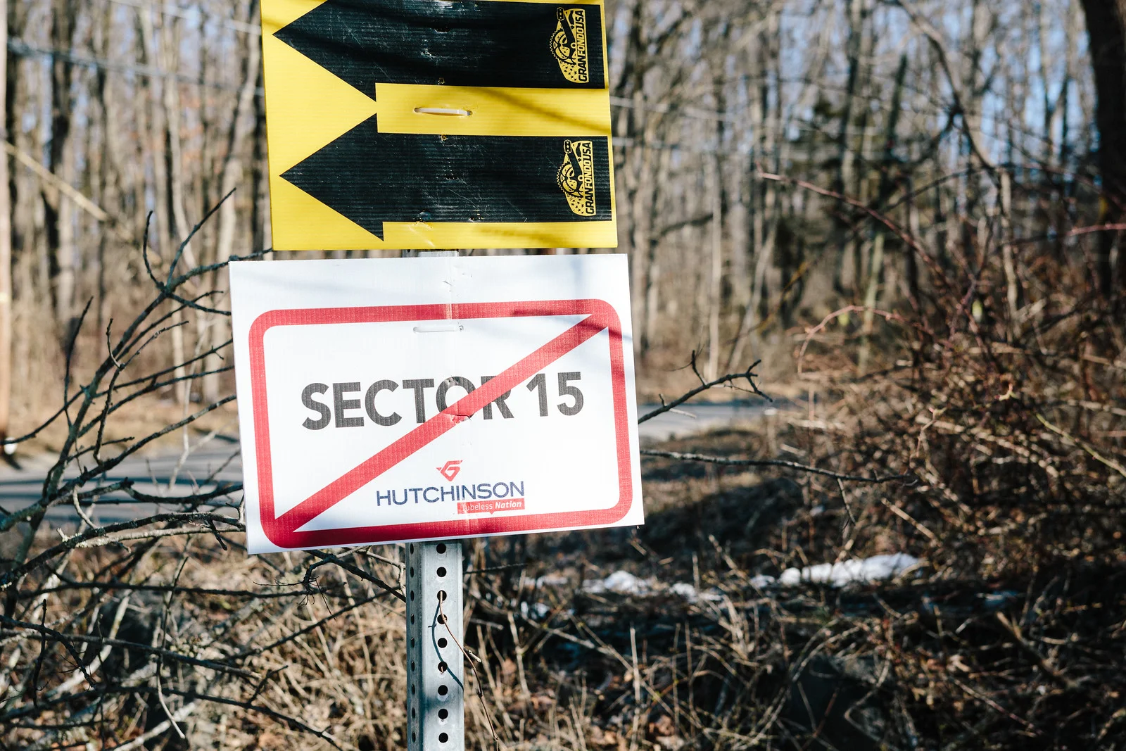 Done and dusted. Hutchinson Tires sponsored the unpaved sectors and provided signs alerting riders of the entrance and exit to each section. Here is the exit sign for the fifteenth sector.