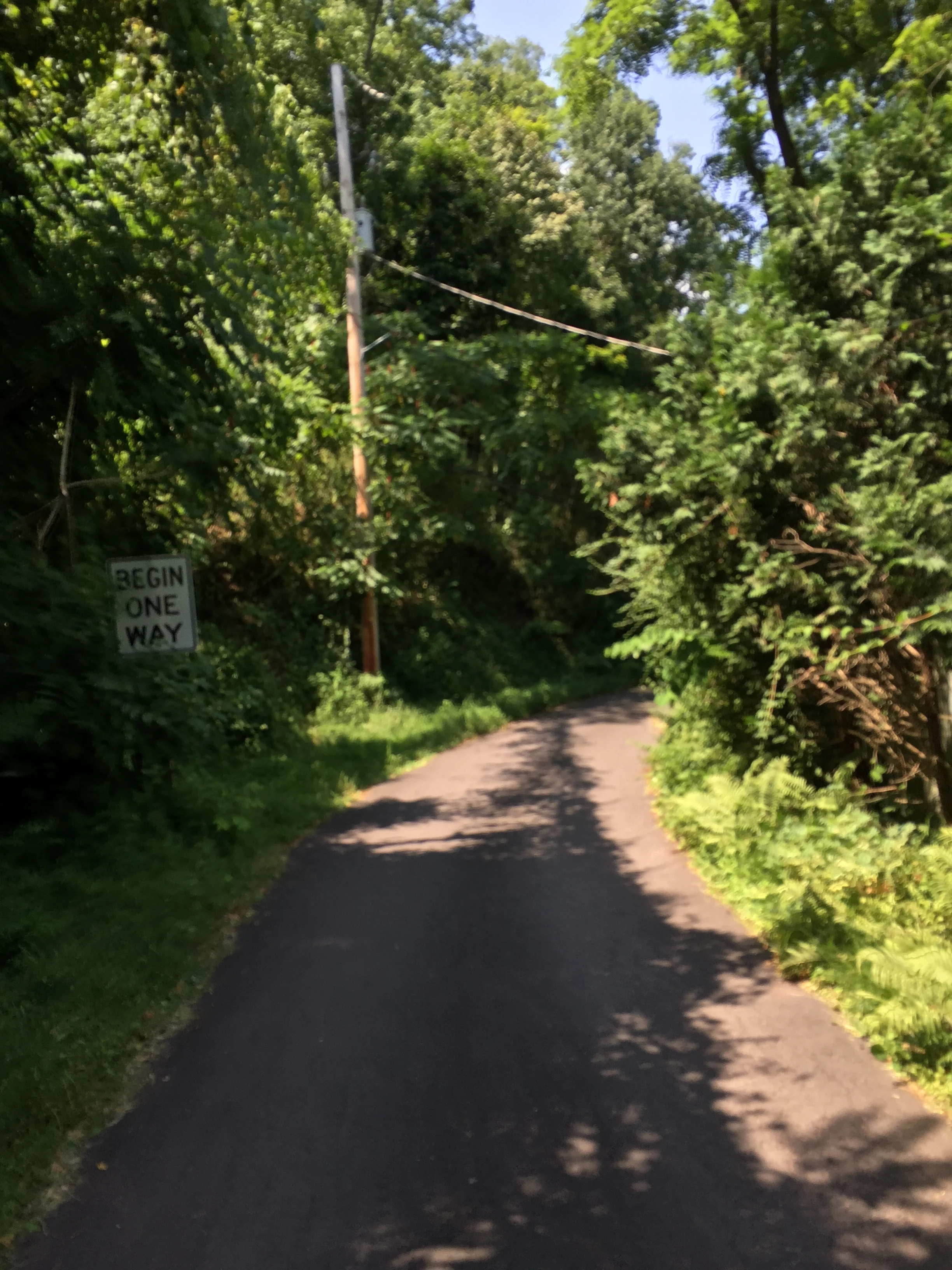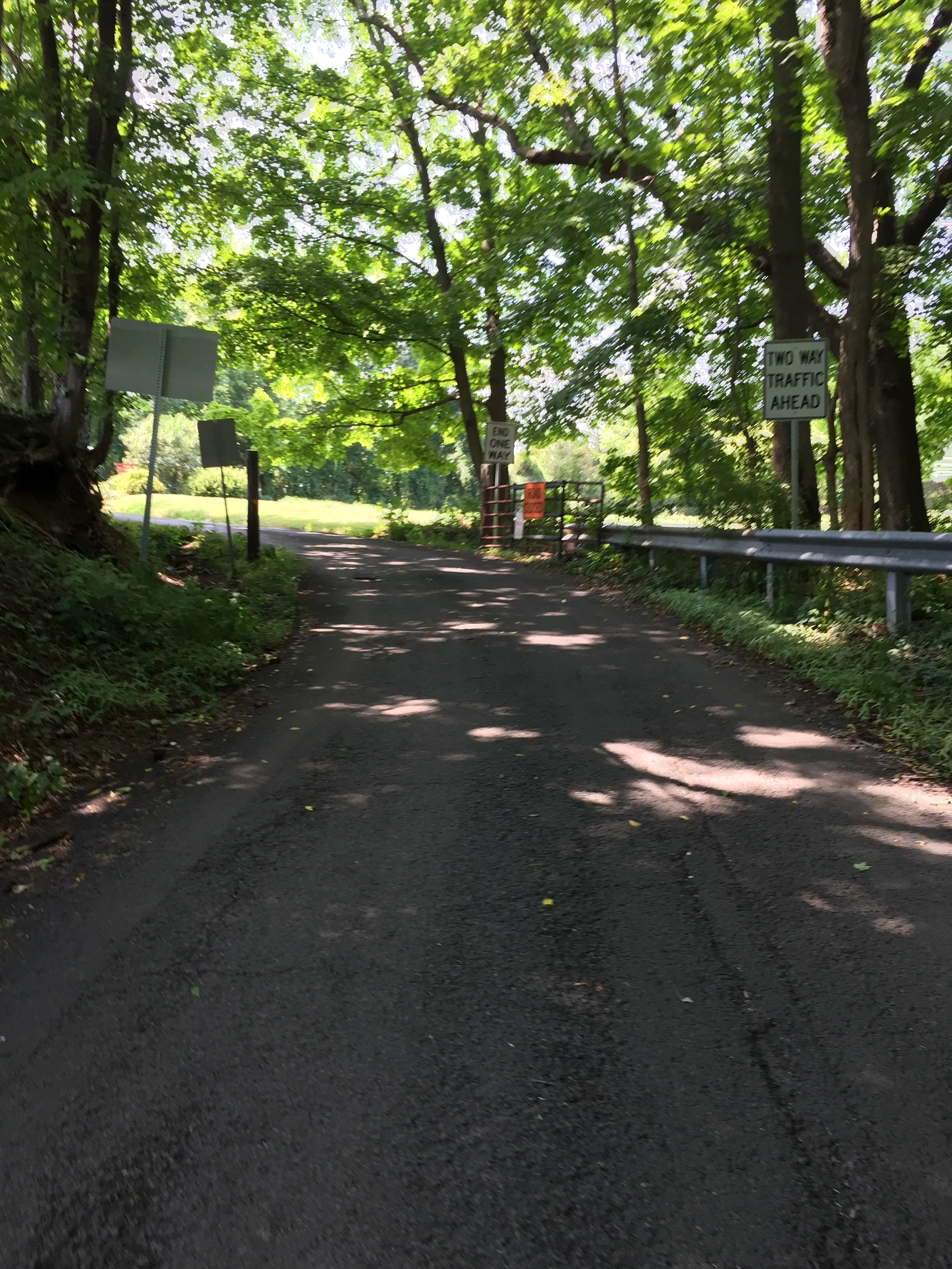 The shady overgrown unmaintained Uhlerstown Road has a seasonal gate at the top and bottom like Platte Cove Road in the Tour of the Catskills.