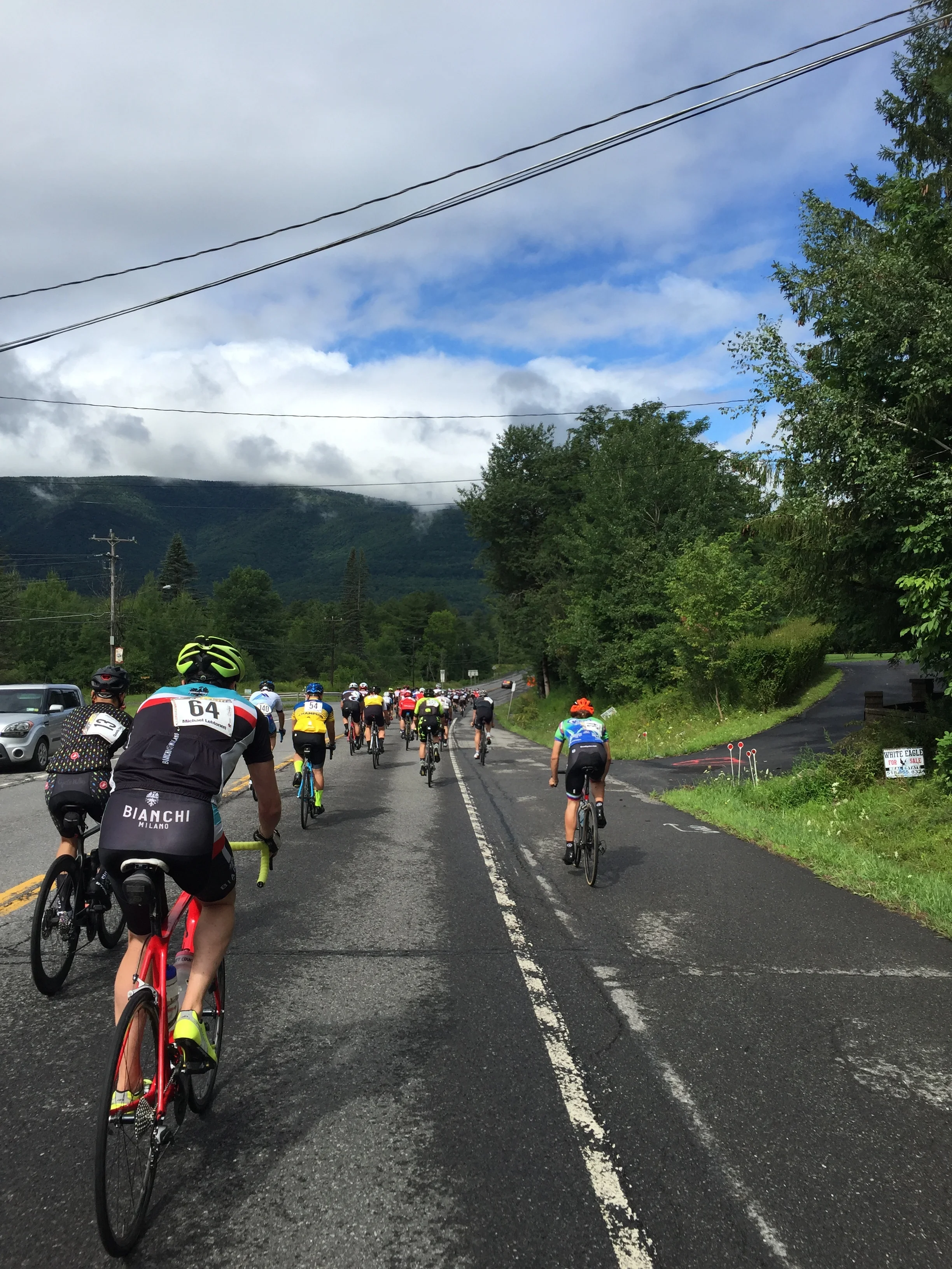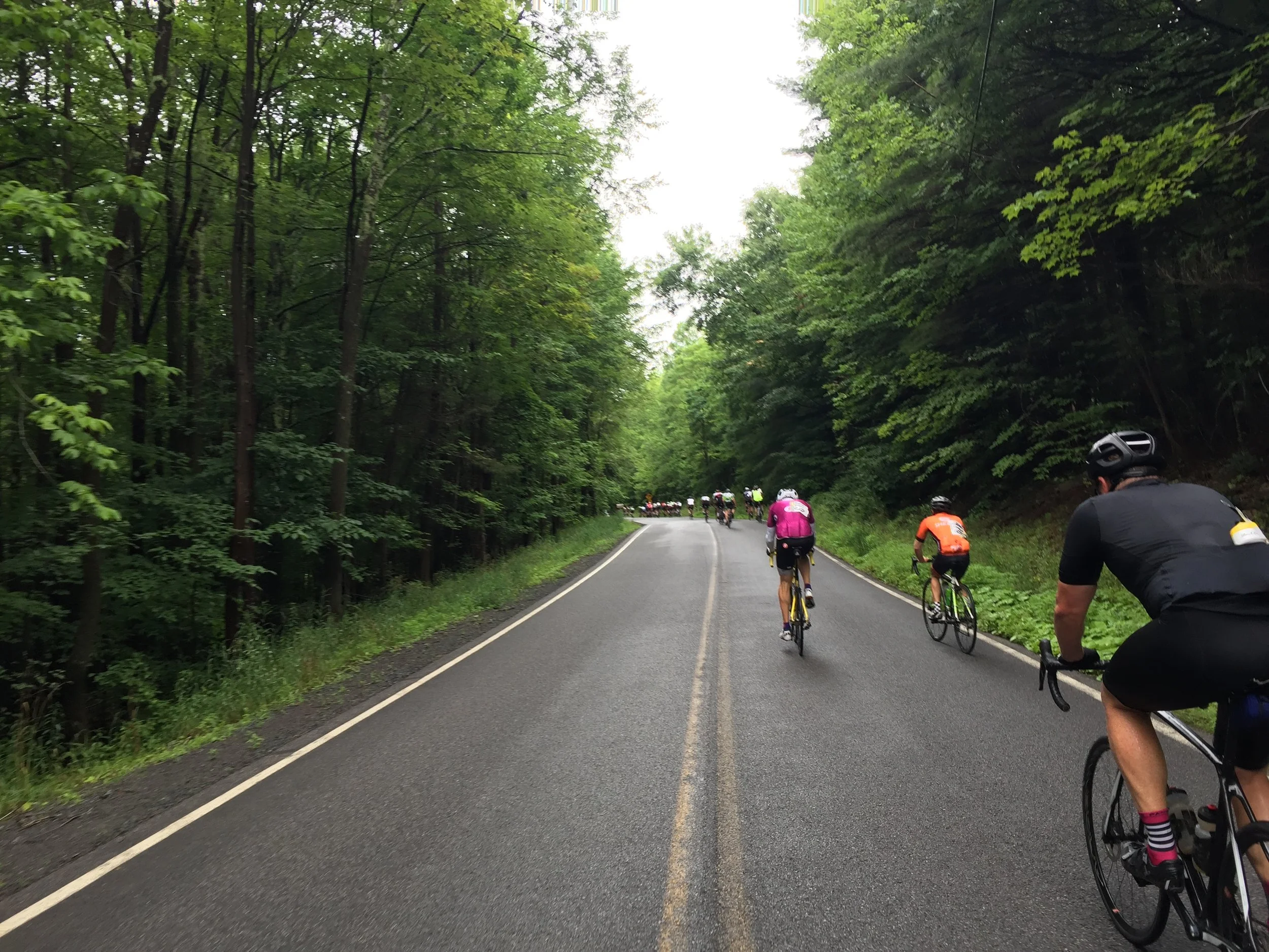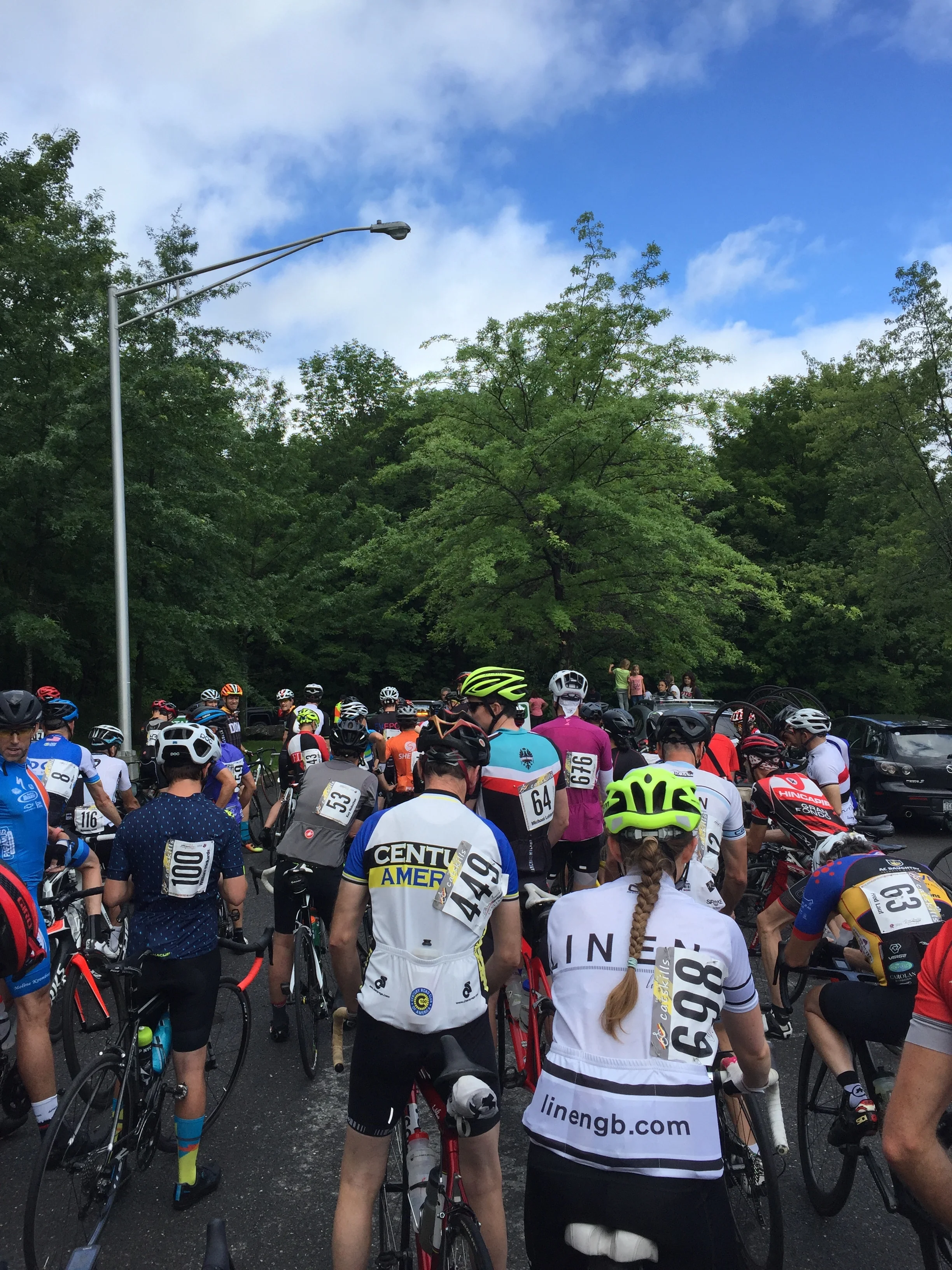 The view from the back of the 72-mile pack. The sun came out for the start of the eleventh edition of the Tour of the Catskills.