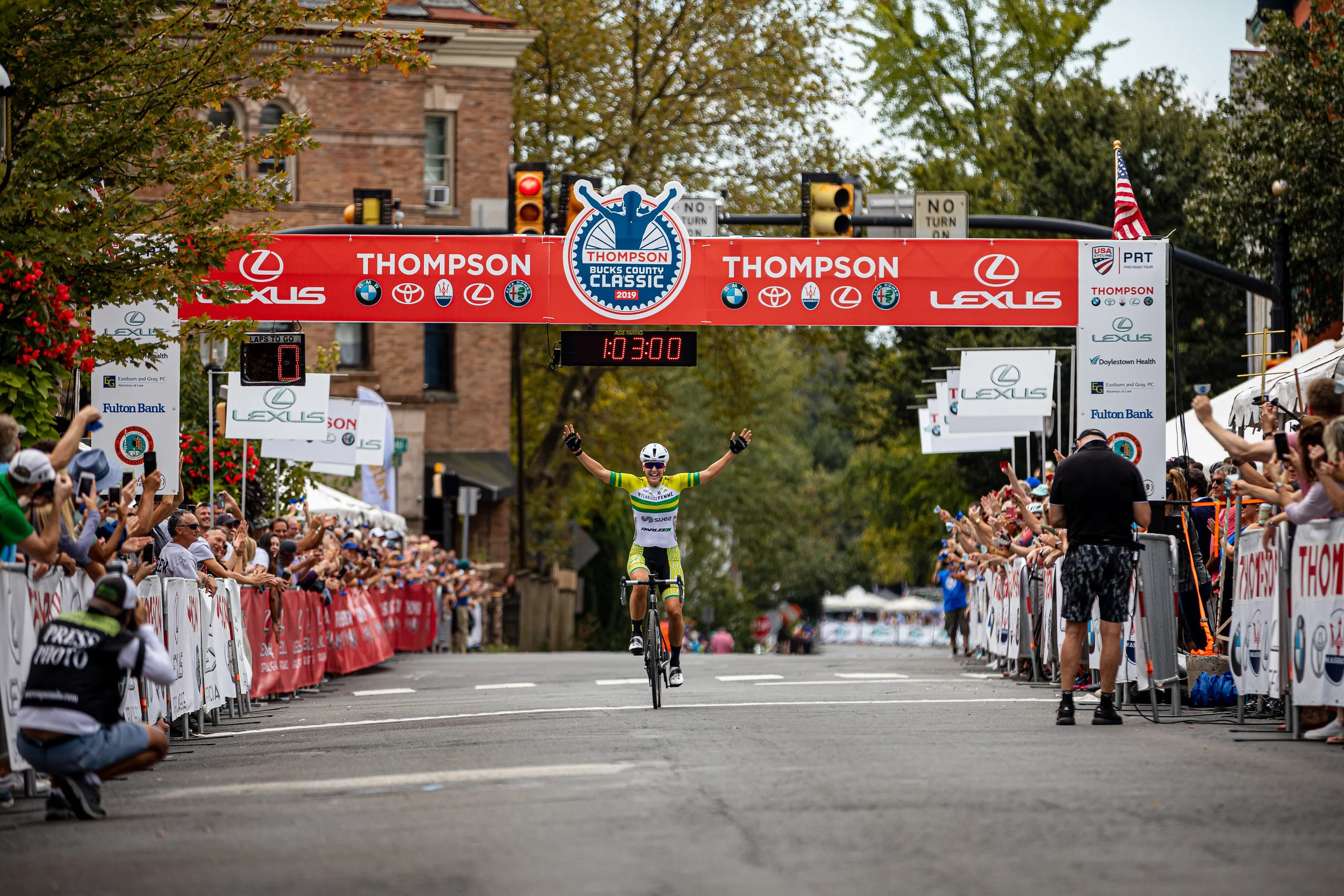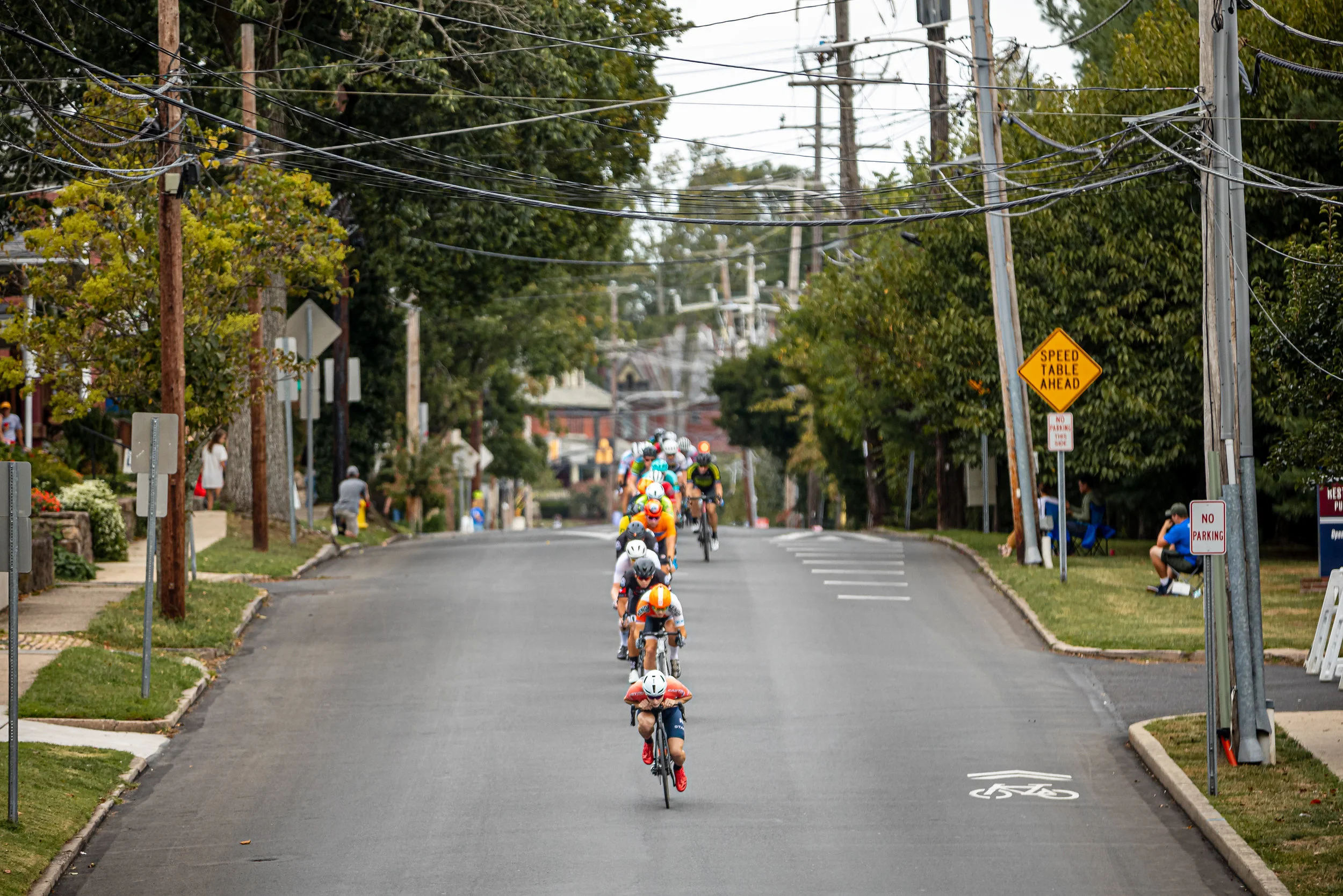 One hundred men started the 2019 Thompson Bucks County Classic, the final race of the day, the weekend, and the Arts Festival. Either the racers were eager to rev it up or they were excited for the end of the road-racing season and wanted to get to the finish quickly. Either way, each lap displayed speed. This course gives no protection to racers who struggle going uphill, and strangely enough, no recourse for those who think they descend like downhill mountain bikers. The problem is everyone else thinks descending is where he or she can catch up. It doesn’t work that way.