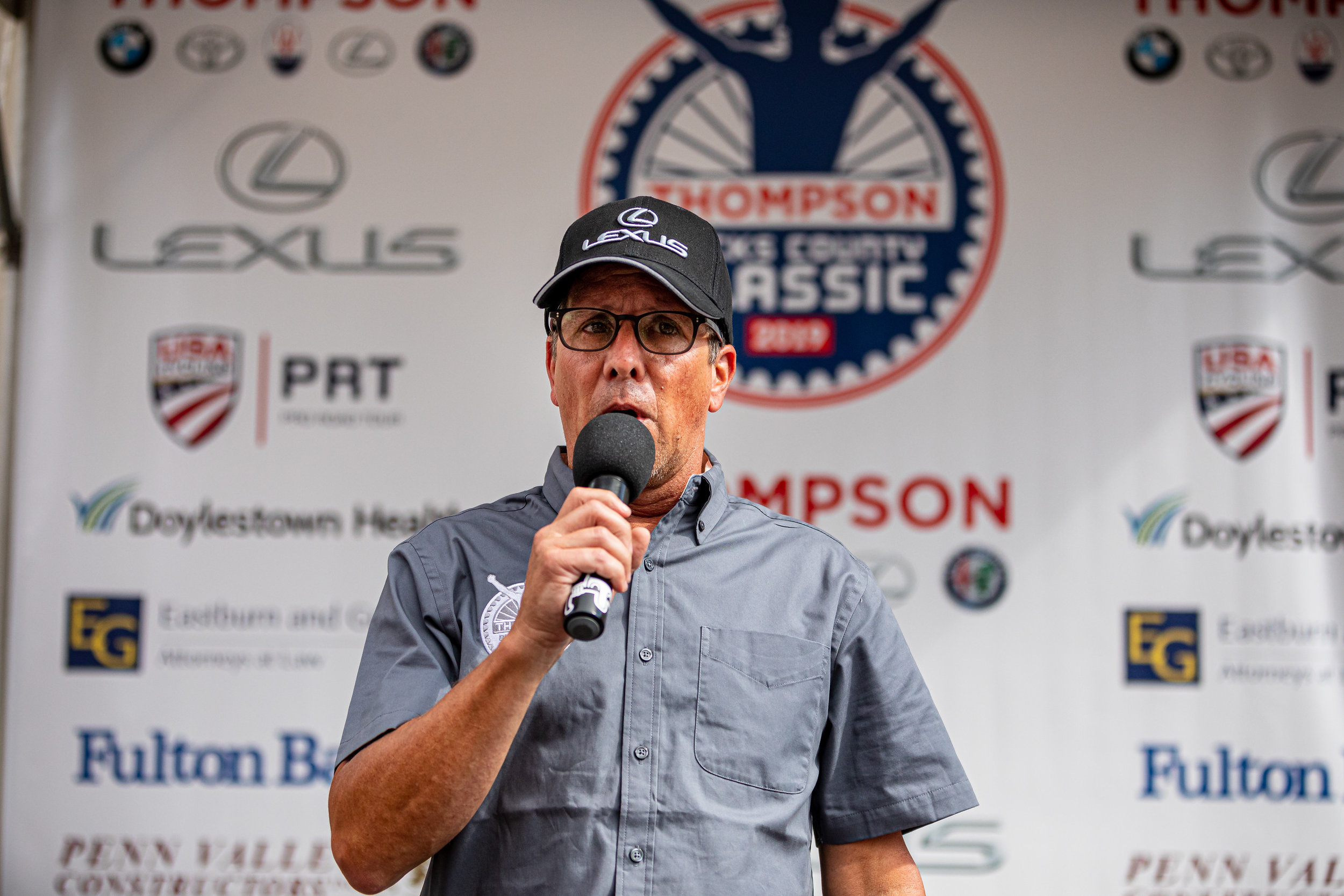 Announcer Gary Thornton (@velorambling) called the races all day. Photo courtesy Mike Maney.