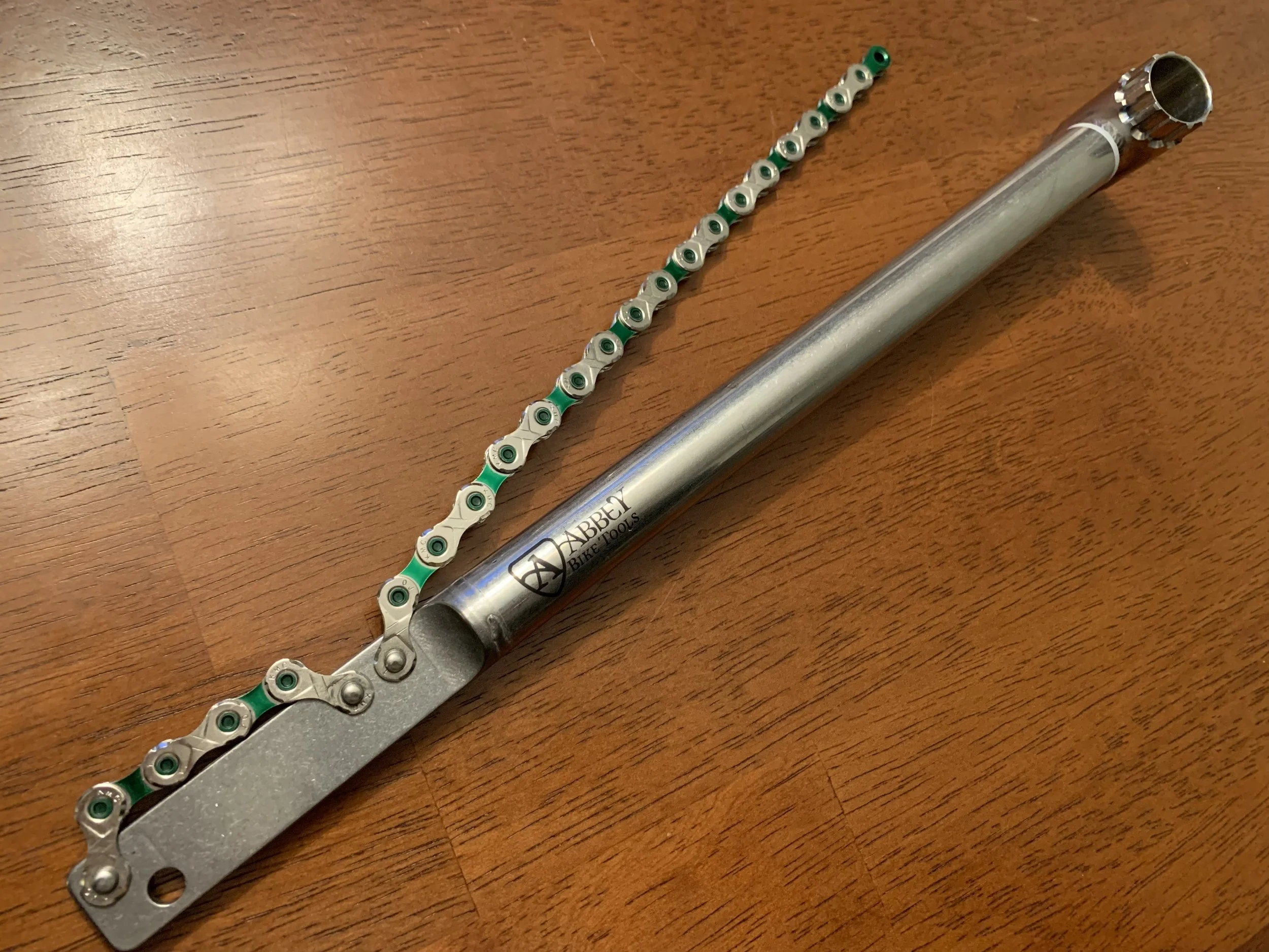 The Crombie Tool doesn’t just stop there with the design. Since a chain whip is necessary in cassette maintenance, Abbey Bike Tools made the Crombie Tool compatible with the Whip-It Chain Whip. Simply slide the Crombie Tool handle into the Whip-It Chain Whip and you’re good to go with any cassette issue tool mission. Since they work together like Batman and Robin, they might as well hang out in the same part of the tool wall together. Wouldn’t you know, we wrote about the Whip-It here.