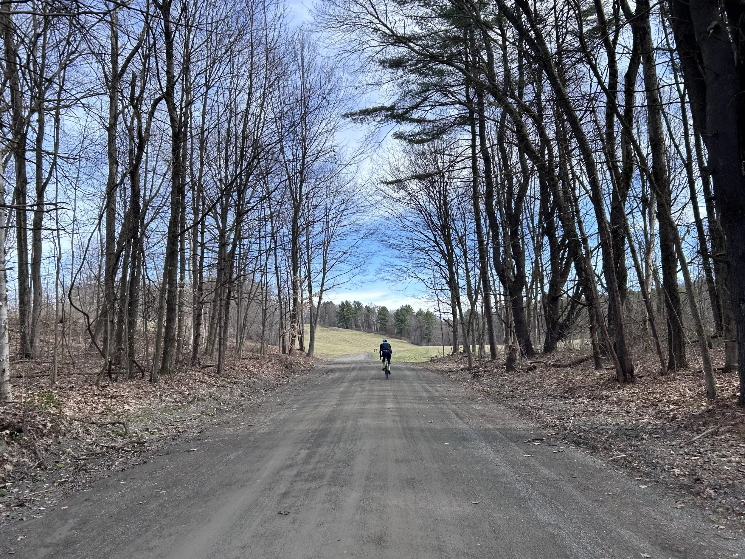 Anthem Sports also directs the Tour of the Catskills, a seventy-mile route with a beast of a climb at the end. I have finished the Tour of the Catskills several times, so what came next was due to my neglect. The route profile was not studied long enough, especially as it crossed into Vermont and turned onto Sandgate Road. What Sandgate Road hid in its wooded wholesomeness was a 3.5-mile gravel climb that gained 800 feet of elevation. My Garmin’s screen mimicked the Artemis II rocket launch from earlier in the week - it simply went straight up. It was getting close to the time the road bike selection would issue my first struggle. Meanwhile, the Cadex Classic tubeless tires held their own on the crumbling uphills. In some areas near the top of Sandgate Road the incline hit 15%. It was the rounded top of the climb that came into view on my Garmin that encouraged my upward progress, not the nearness to the summit. I was cooked. I was close to dismounting and scolding the road bike, but the top came into view as well as the sound of a pond of bullfrogs croaking.
